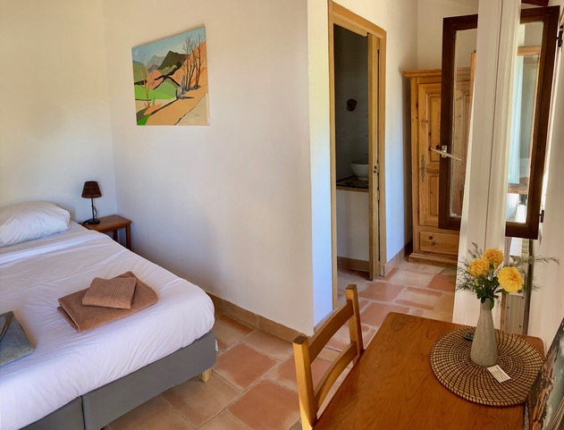 The former magnanerie, where silkworms were bred in the 19th century, offers all guests a spacious fireplace room with a lounge and a dining room for those rare occasions when the sun isn’t shining. On sunny days, breakfast and dinner await you at the long table in the shade of the pergola.